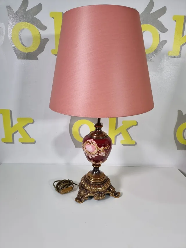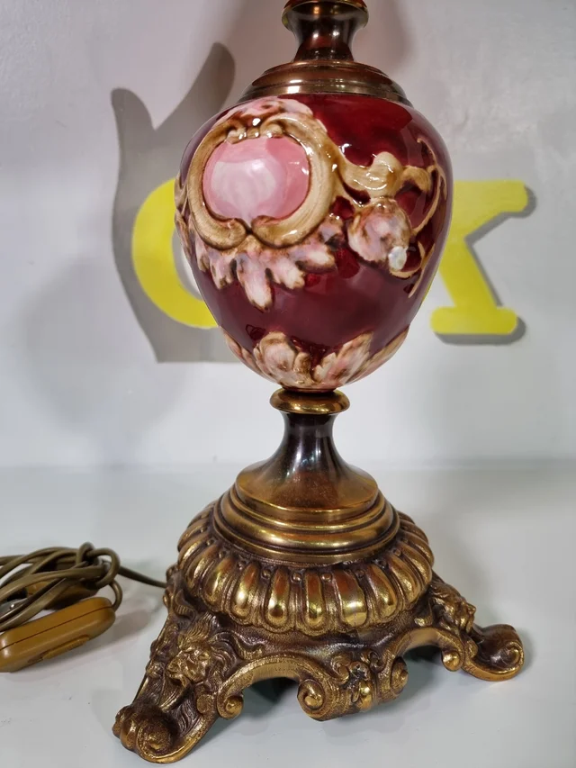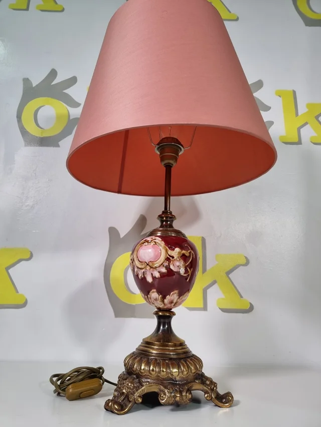 lámpara de mesa antigua vintage en bronce y cerámica medidas 70 alto X 4 diámetro